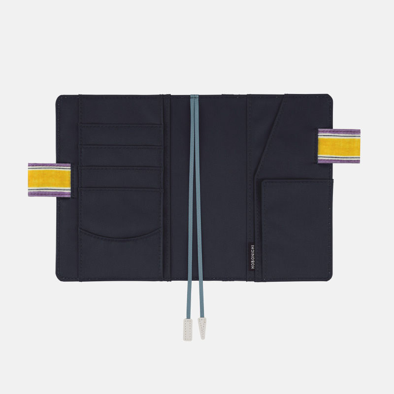 The pen holder is designed to perfectly fit the 12.2 mm (0.48”) diameter Jetstream pen offered as a free bonus gift with select Japanese-version Hobonichi Web Shop products. Pens with certain shapes and materials may be difficult to pull through the holder. The holder can fit pens up to 13.5 mm (0.53”) in diameter.