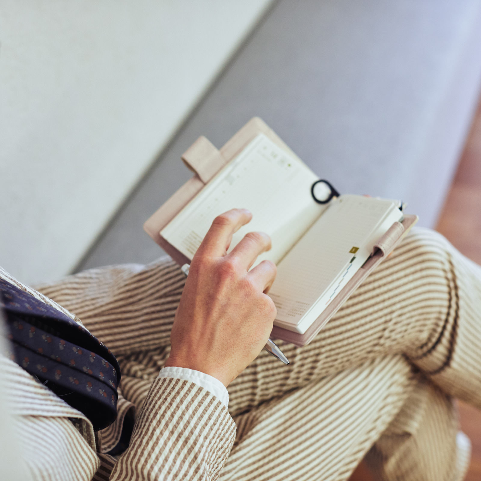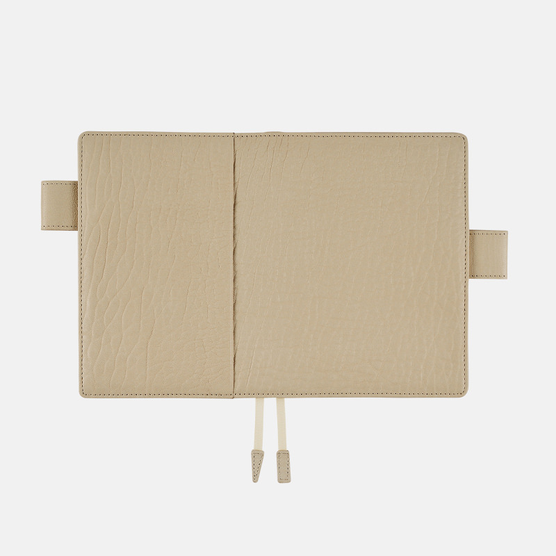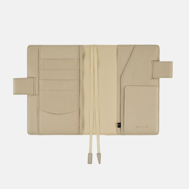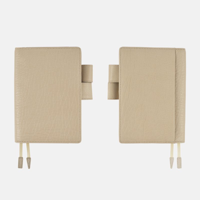 TS stands for the initials of the Hobonichi Techo's book designer Taku Satoh, who also produces our standard leather cover series. This elegant 2019 edition features sheep leather, and comes in a fitting ivory hue.