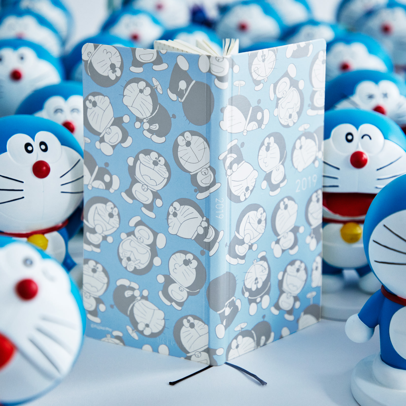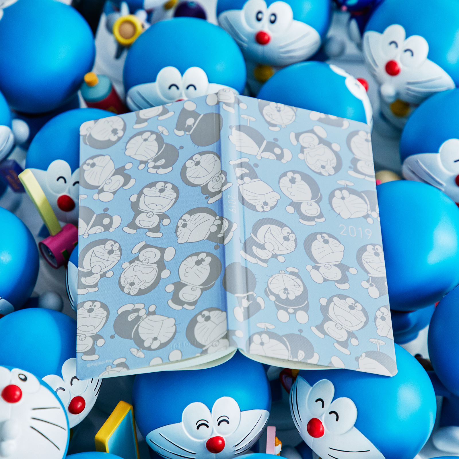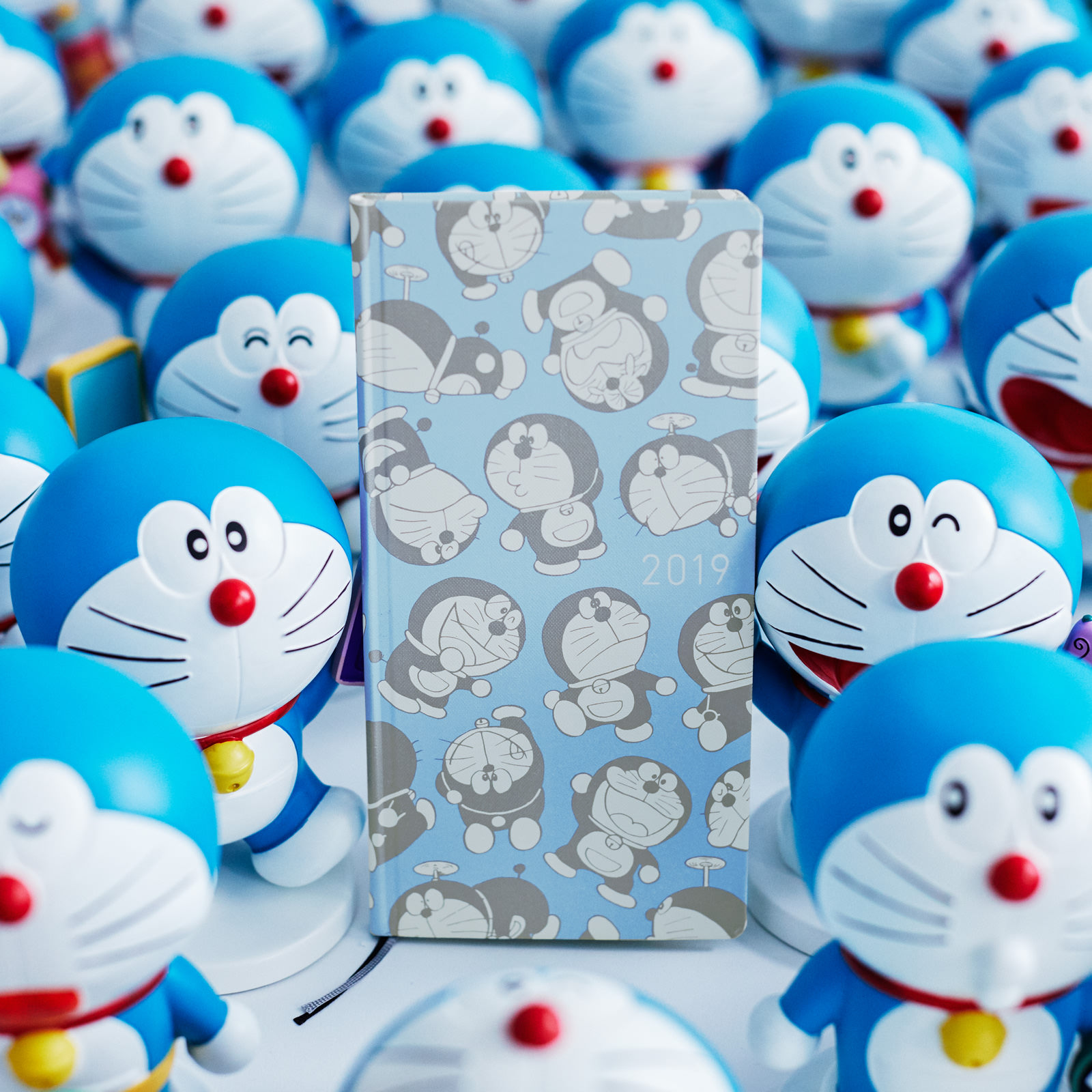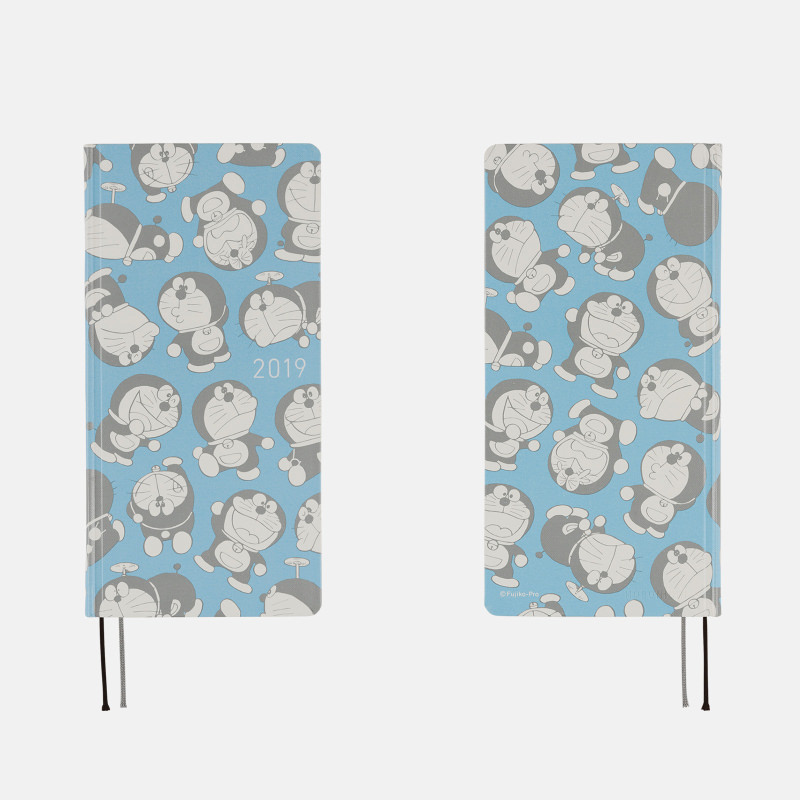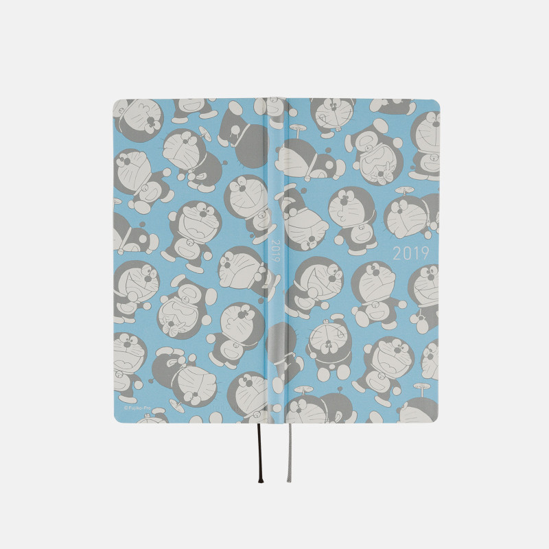 This cover brims with charm, featuring the many expressions of Doraemon laughing, crying, and looking inquisitive. You can rest your eyes on the adorable faces of Doraemon any time of the day with this cover. A grayscale Doraemon pattern is printed against a baby-blue backdrop, and the year “2019” is embossed in white.