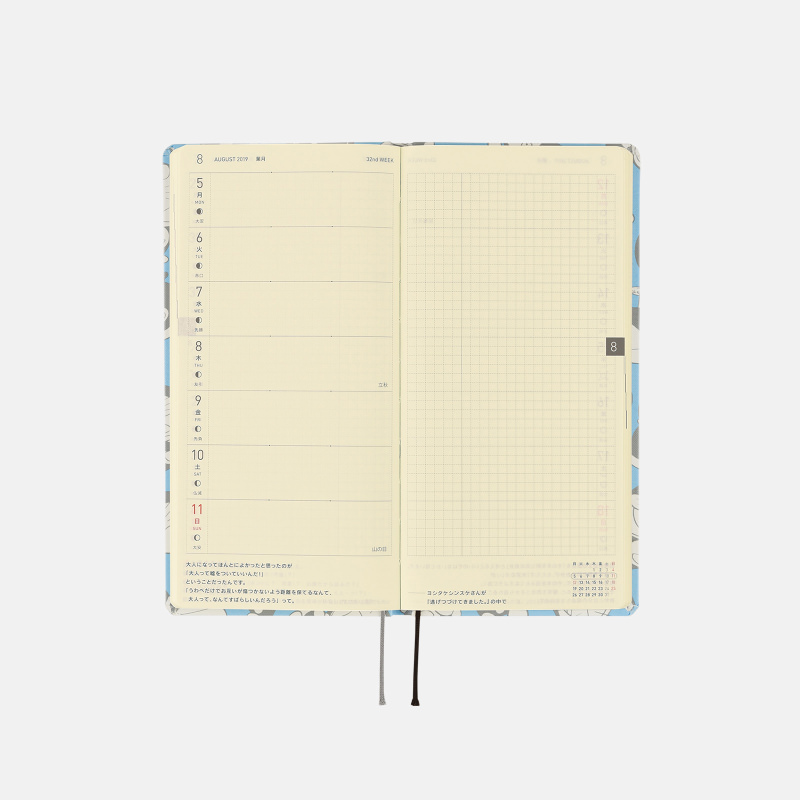 When you order this Hobonichi Techo Weeks, you’ll receive a clear, adhesive corner pocket and a mini-size fold-out Hobonichi Japan Railway Map 2019.