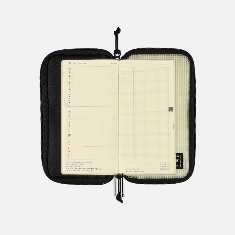 The Combi cover for the Weeks was designed in collaboration with B-Jirushi Yoshida. The cover is see-through and allows you to see your Weeks book stored inside.
