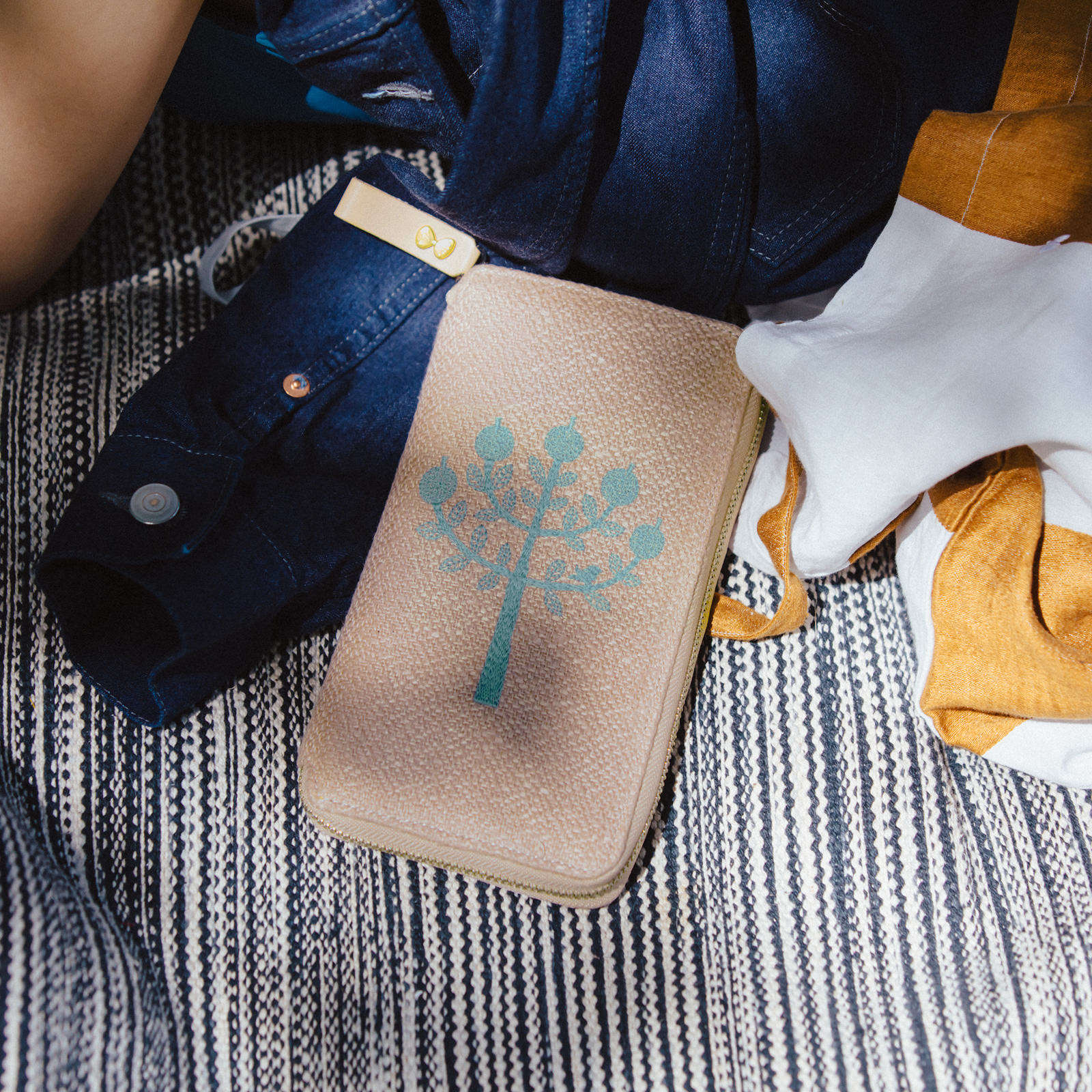This cover features intricately embroidered apple trees. Ringo is Japanese for apple, and the ringo pattern is a longtime favorite of minä perhonen. There’s an apple tree on each side of the Hobonichi Techo cover. Look closely and you’ll see a small bird perched on the branches.