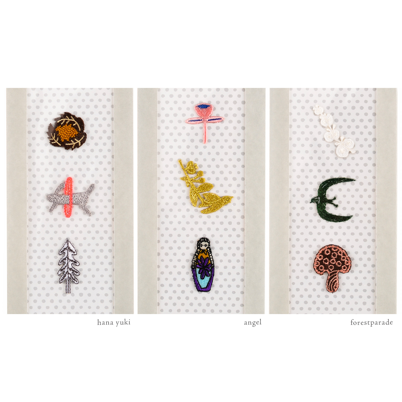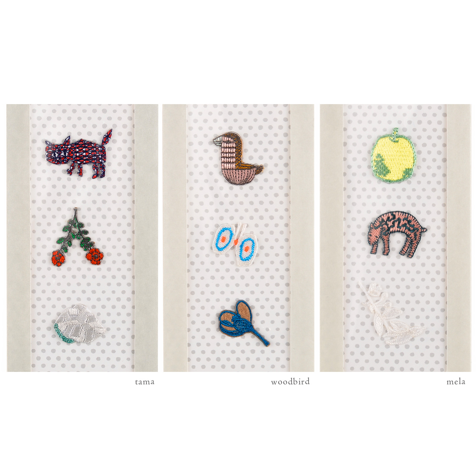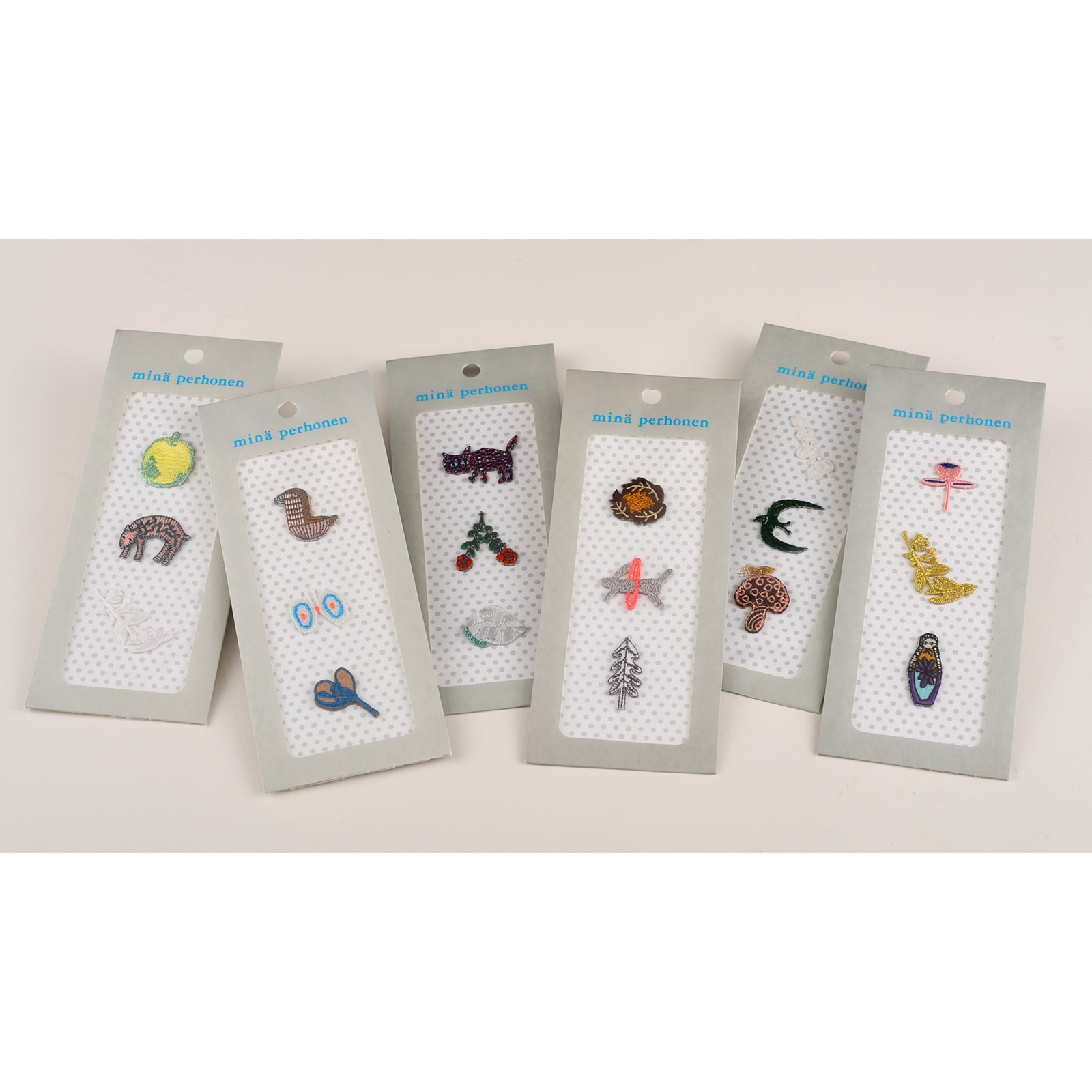 hot pitminä perhonen is a clothing brand that uses original, in-house fabrics created from artwork by designer Akira Minagawa. These patch sets feature emblems that represent trademark textiles released by minä perhonen over the years.