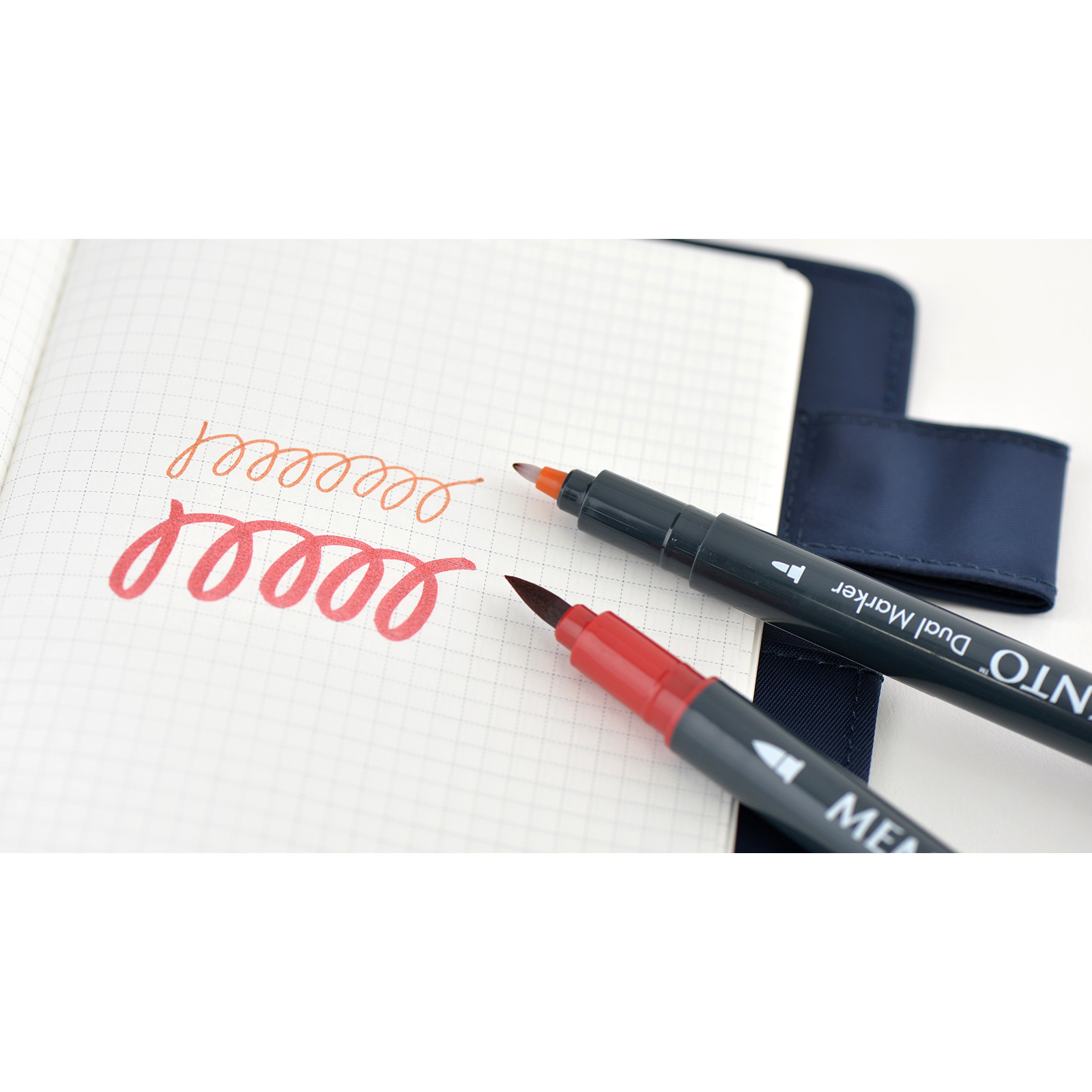 Memento Markers 4-Color SetStamp ink maker “Tsukineko,” established in 1952, designed these markers as an alternative to an ink pad. They also work great for applying several colors to a single stamp, and reduce the mess when using stamps on the go. The beautiful colors are slightly translucent, like a mild-colored highlighter. Both ends of the marker are fitted with a thick and a thin size pen nib. You can write directly onto the paper with this marker, or use it to color in your stamps.
