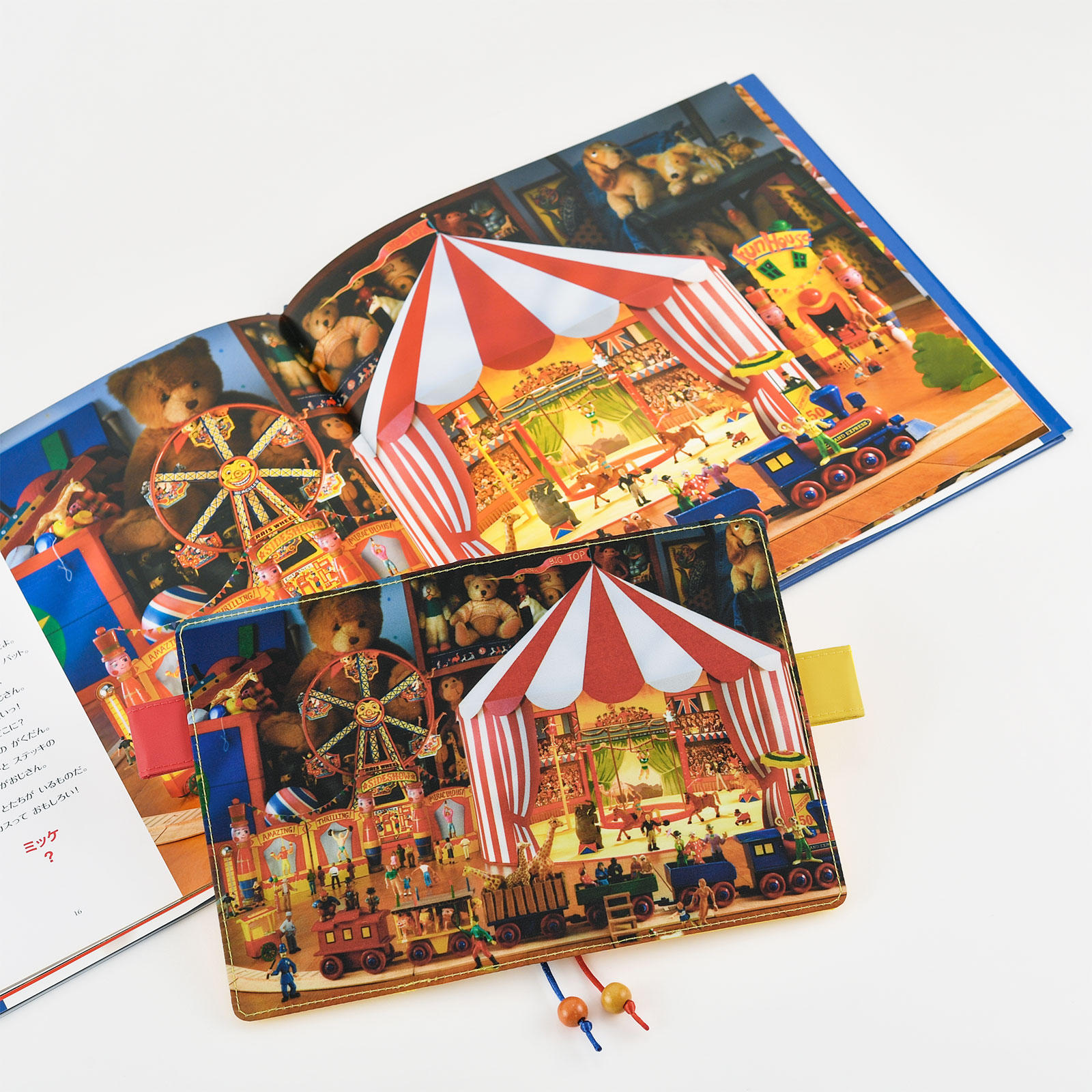 The A6 size Hobonichi Techo cover contains an all-over print of a bustling circus from the book Can You See What I See?: Toyland Express.