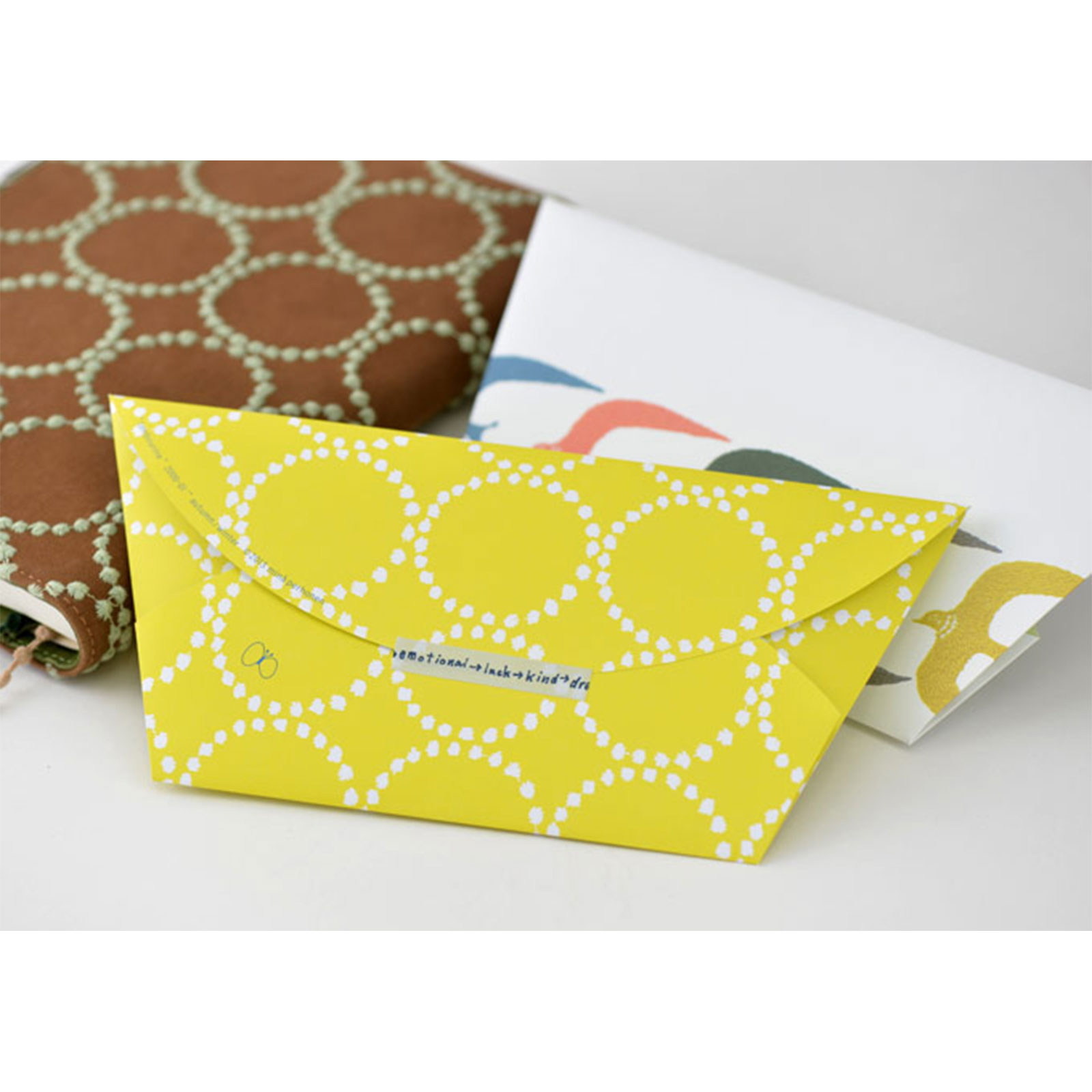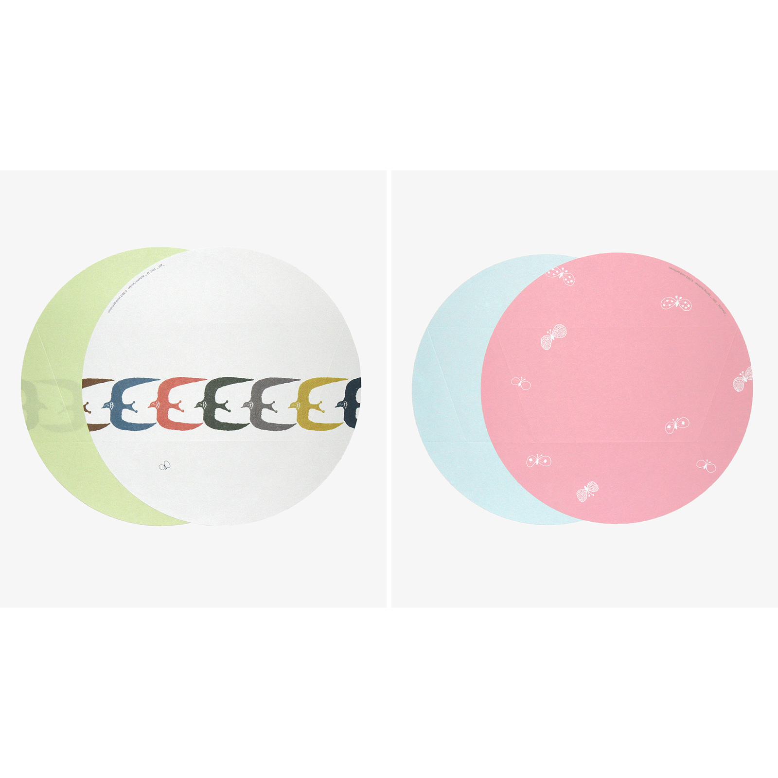 moon letter...This minä perhonen letter set consists of full-moon-shaped stationery that folds into itself to become the envelope. There are 5 designs and 2 sheets each for 10 sheets total. Its uses are flexible, as you can write directly on the paper that becomes the envelope, or use a different sheet and use this as just the envelope. The paper is lightly colored with a blank design on the back for writing.