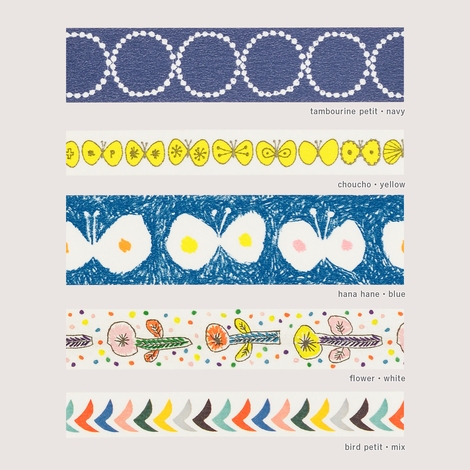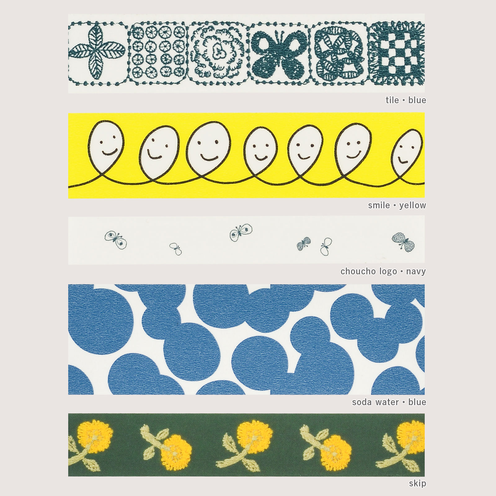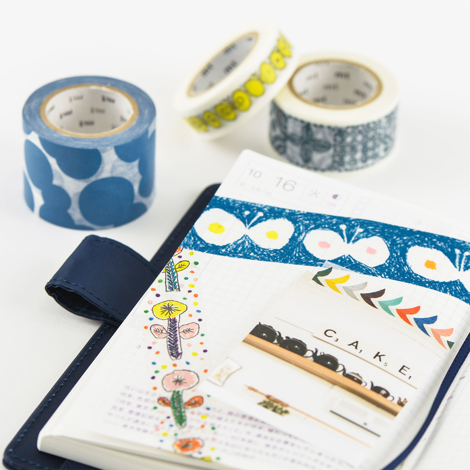 The “minä perhonen” series mt washi tape offers the characteristic warmth that can only come from hand-illustrated designs. The tape comes in a total of 10 designs, including the staple designs “tambourine,” “choucho” and “hana hane.” The lineup also includes “smile,” which depicts adorable smiley faces in a line. “soda water” design is taken from ”soda water” cover making it a great match.
