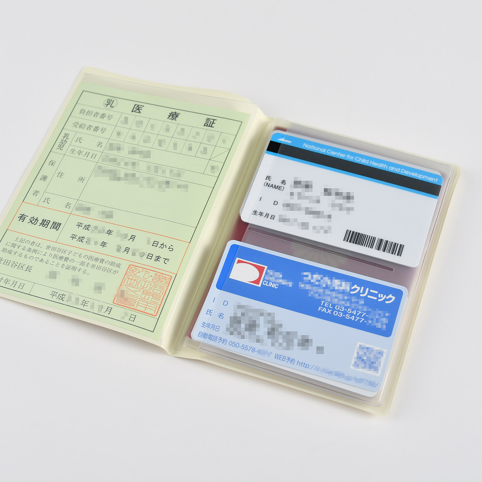 Inside the case is a pocket flap on the left, 4 card pockets in the center, and a pocket you can slide things into from the left. The case is convenient for storing insurance cards, medical cards and documents, and more. In addition to being a good way to store important cards, the compact size makes it handy for using as a case to carry around with you.
