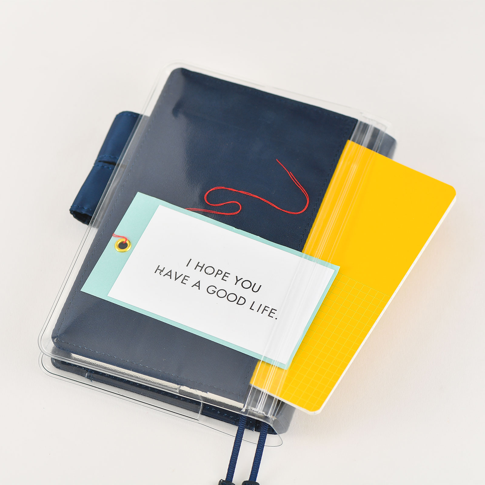 Cover on Cover is an optional, extra covering that fits select Hobonichi Techo covers to protect them from wear and tear. (Not for use directly on book.) It also provides a place to store postcards, pictures, and other decorations to spruce up the look of your cover. Feel free to fill it with family pictures, travel post cards, and other things that cheer you up!
