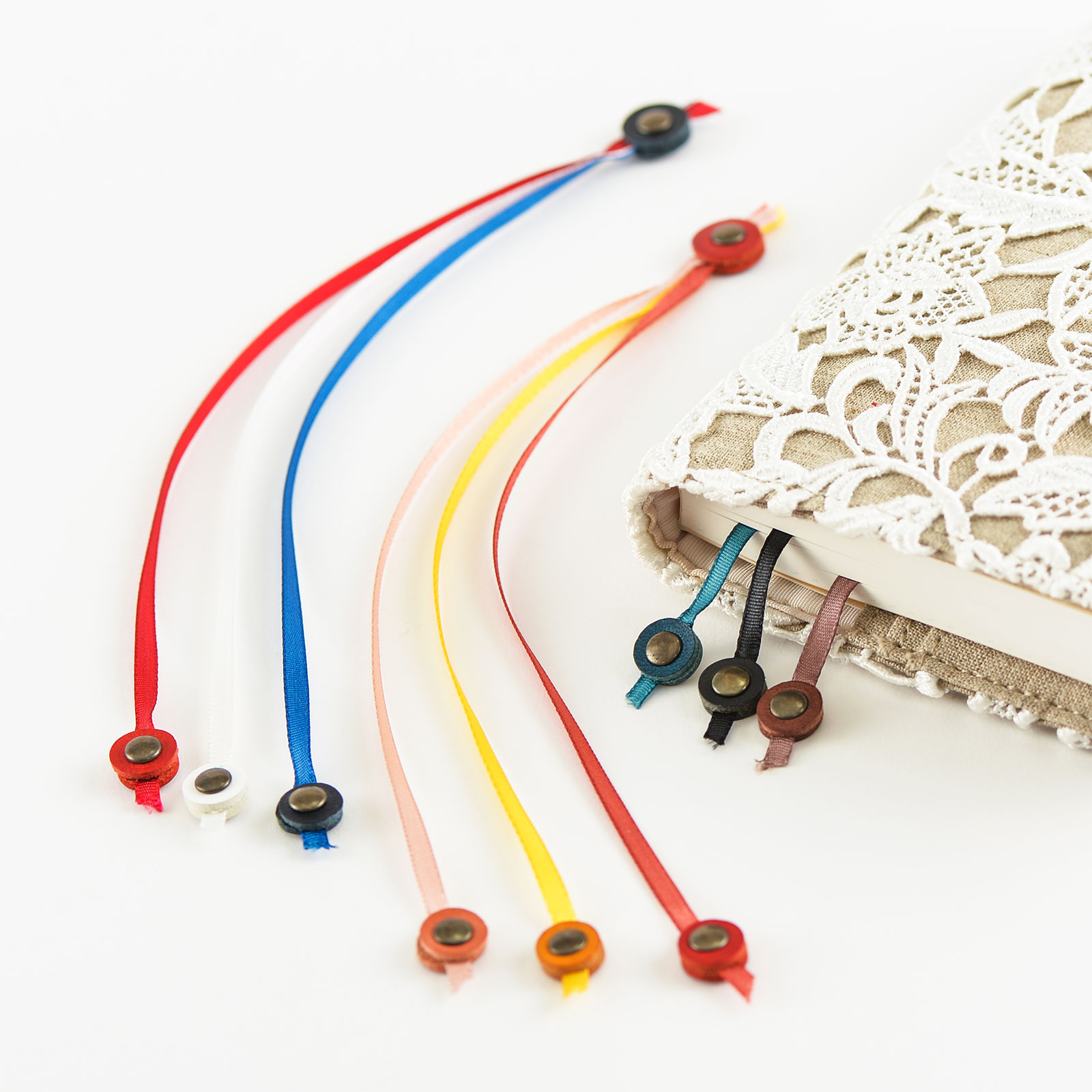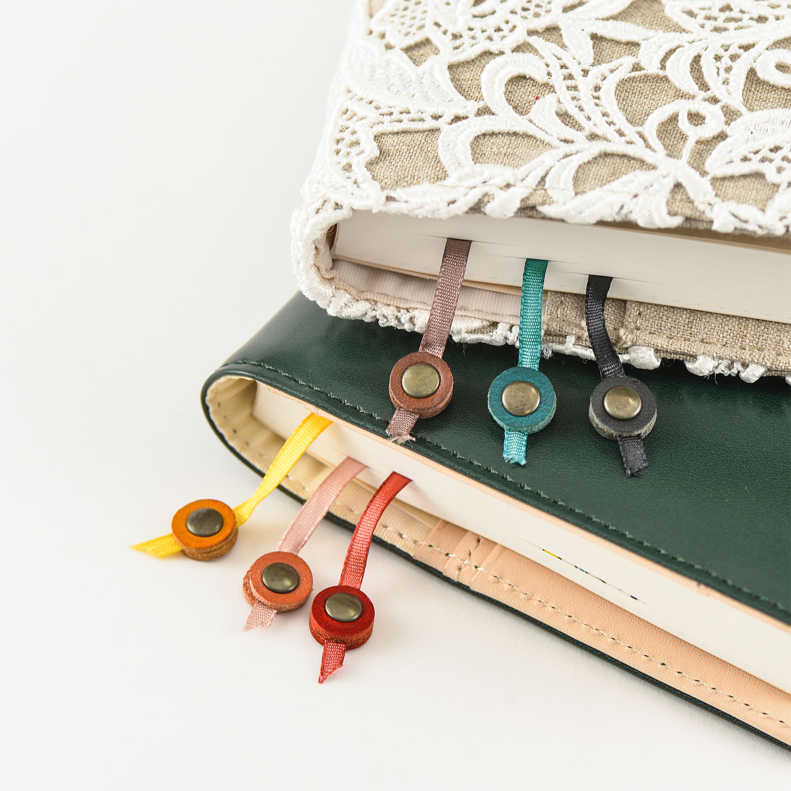 We’ve collaborated with leather maker m-piu to bring you these colorful ribbon bookmarks with a leather charm. Three strands are all attached at the end to keep them stable just by placing it into your planner. The cute shapes and colors provide a nice visual accent to the book. The bookmarks come in two different lengths, so please choose the one suitable for your planner book size.