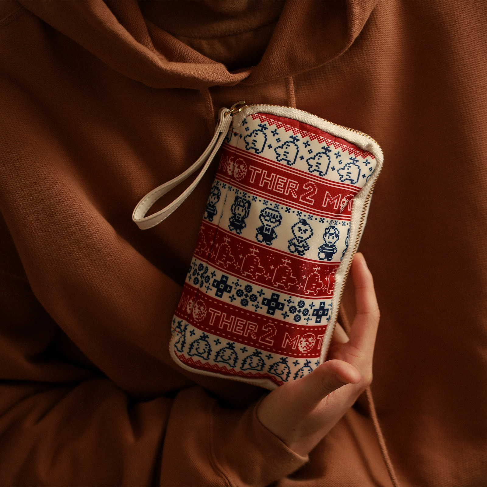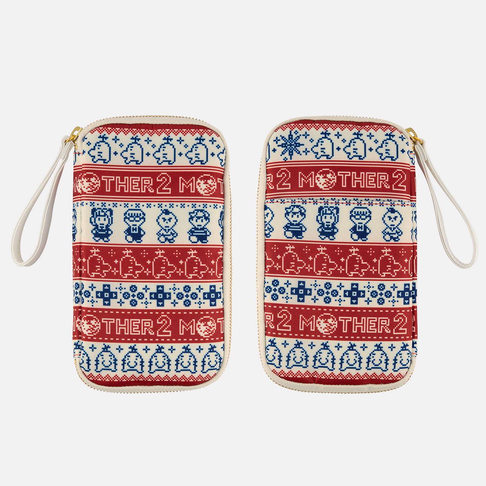 Pixel Patterns features cute pixelated illustrations from Mother 2 (EarthBound in North America), a video game series created by Shigesato Itoi and released in 1994. Reminiscent of a cross-stitched Christmas sweater, the pattern features Mr. Saturn, Ness and friends, the Mother 2 logo, controllers, and more. The blue and red pixel pattern was created by cross-stitch designer Makoto Oozu.