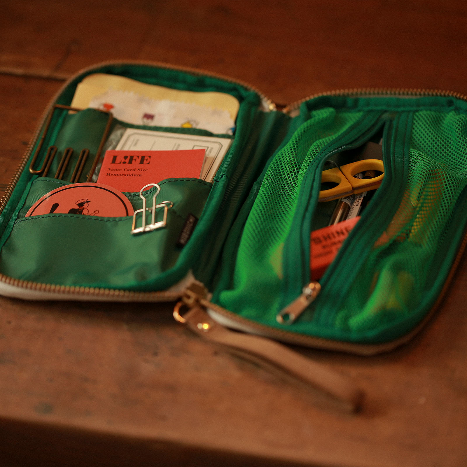 This pouch is like carrying an entire drawer with you wherever you go. Keep it on hand to easily access stationery whenever you need it, or use it on your desk to safely store your important items.
