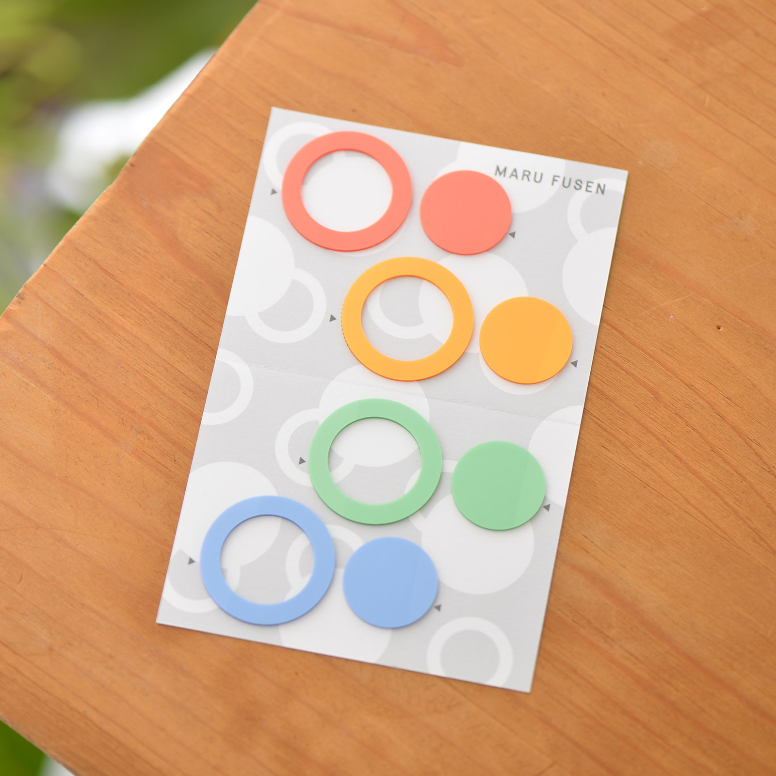 These colorful round sticky notes are sized-to-fit with the grid paper of the Japanese Hobonichi Techo Original / Cousin. They work well for marking dates on the monthly calendar, and you can also write on them.