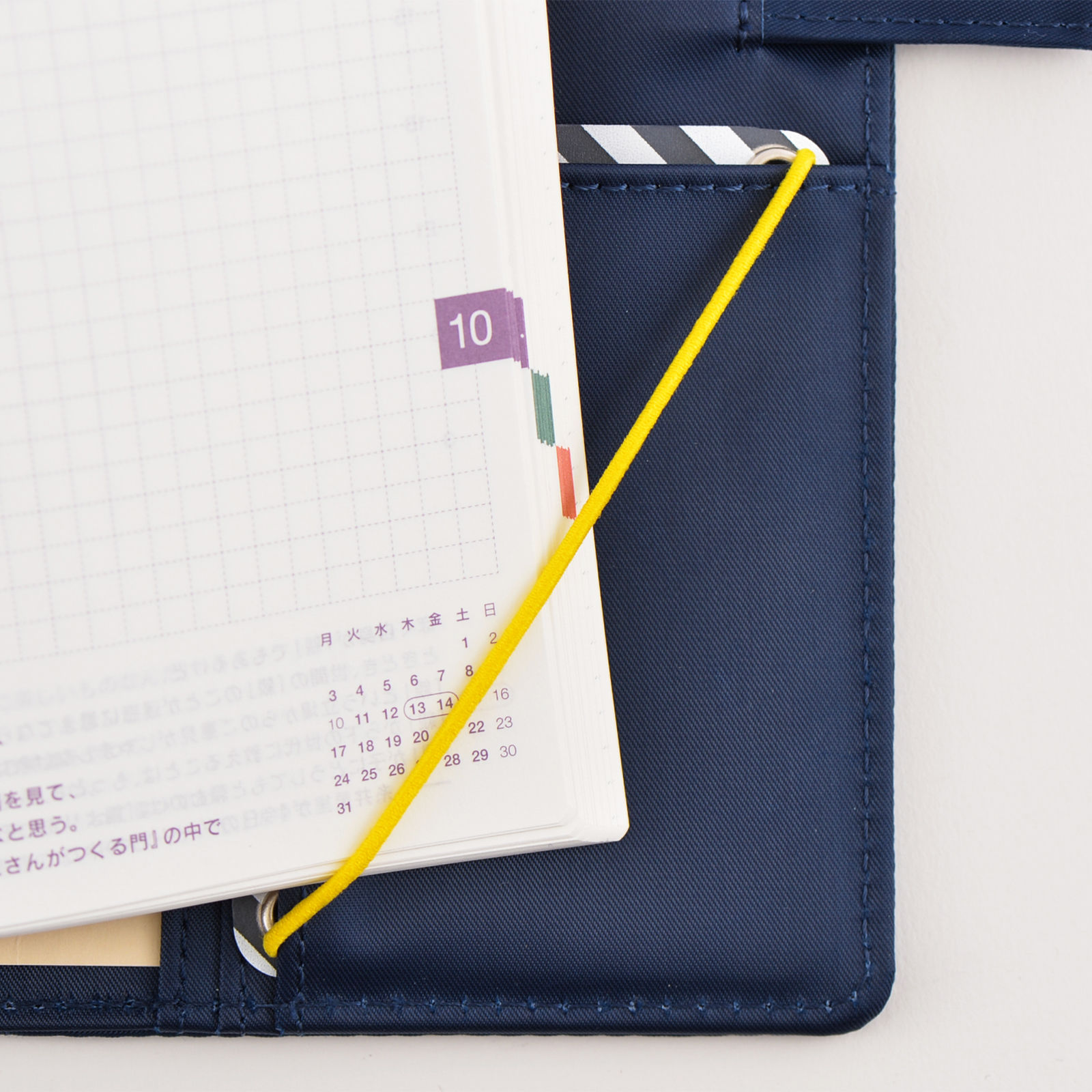 This is a special bookmark that you simply affix to the interior of any classic-style Hobonichi Cover with outer pen holders. The Page Keeper automatically flips along with your page-turning and stays on the page you last opened using a rubber band.