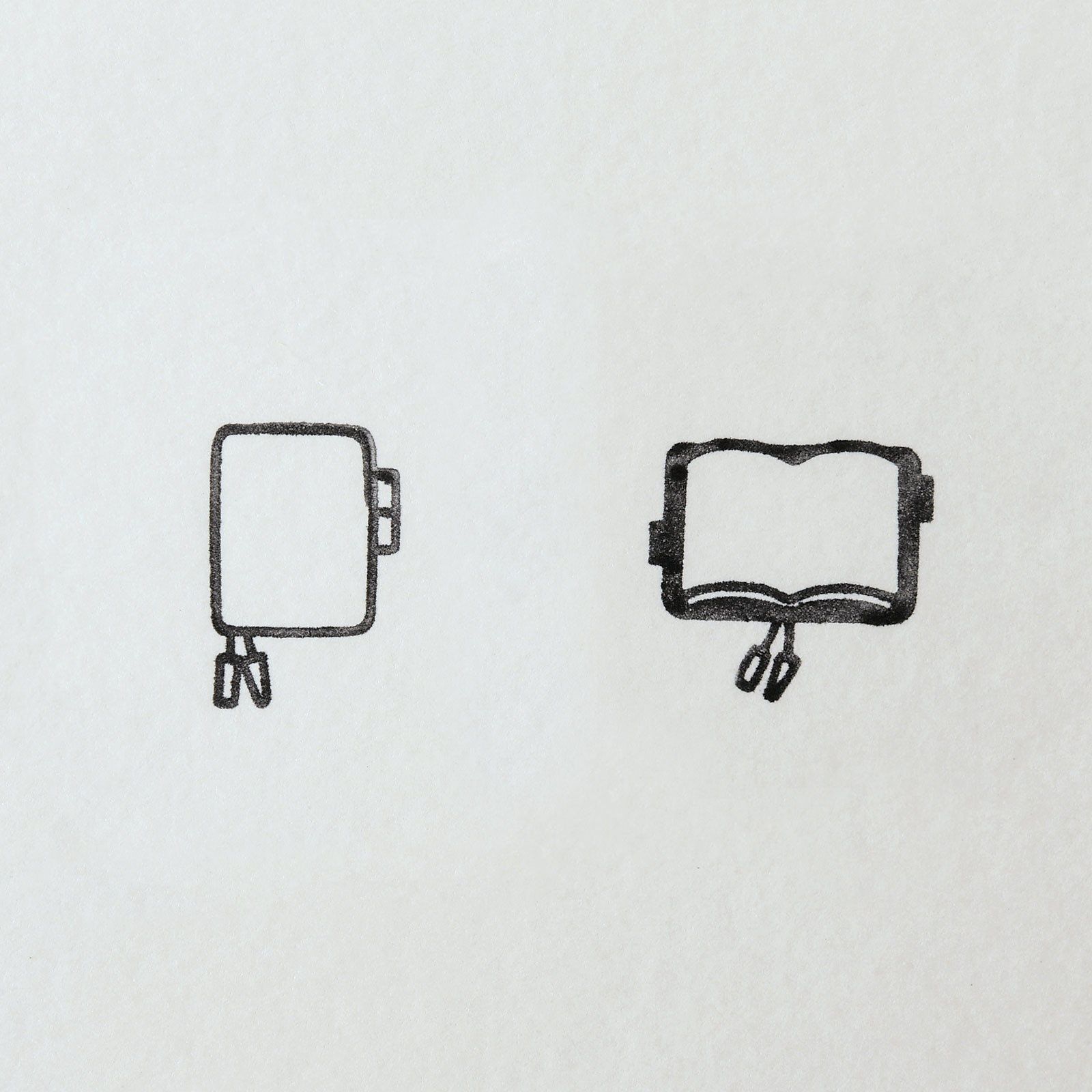 The cute stamp designs were drawn by illustrator Saki Obata and shape the Hobonichi Techo with rounded edges. You can stamp these pictures into your pages with your favorite color ink to add a little flair.
