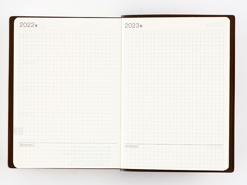 This page provides space to write down plans for the year or write down a review of what happened. The Bookmark section is useful for writing down dates of interest.