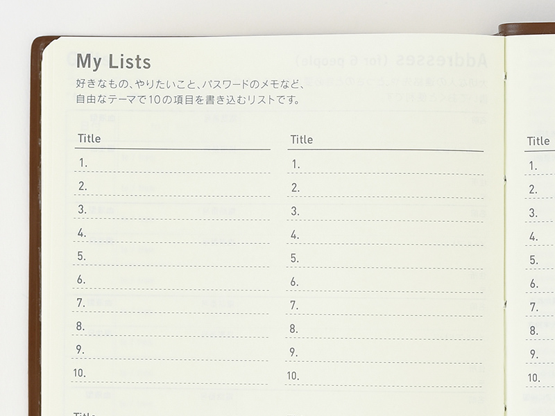 The address book allows you to write in the contact information for people such as family and close friends. The A6-size book has space for 6 entries, and the A5-size book has space for 16 entries.