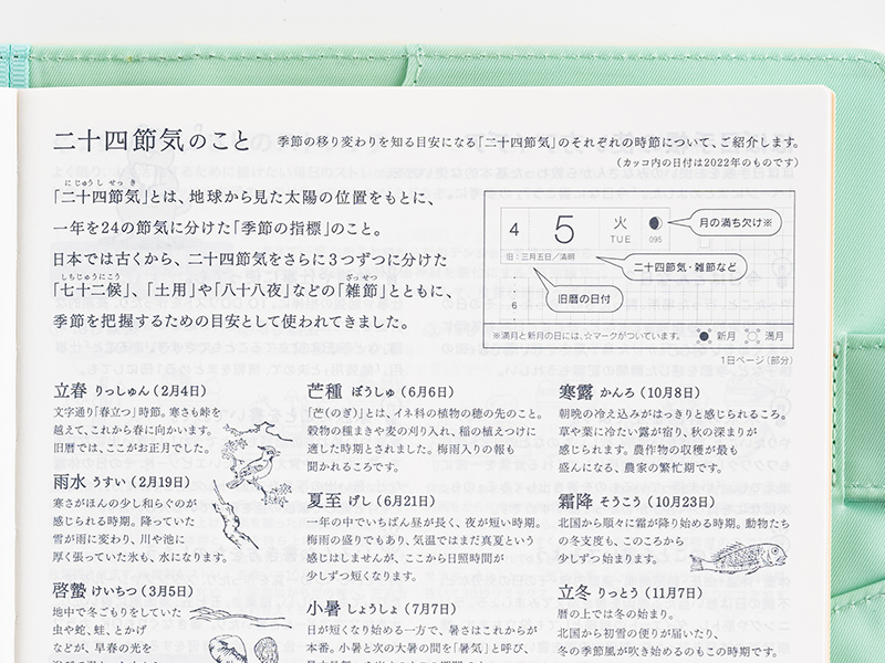 This section explains the names and origins of solar terms that make up the 24 points in traditional East Asian lunisolar calendars. These include well-known days such as the start of spring and the winter solstice.