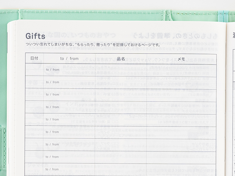 Record the presents you’ve given or received in the Gifts page so you don’t forget who gave what to who and when. This is also helpful for thank-you cards. There are spaces for 20 entries.