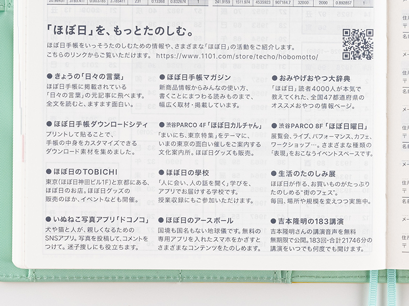 This page includes information to further enjoy your Hobonichi Techo and an introduction to what Hobonichi does. Also contains a link to a list of Japanese articles the quotes are selected from.