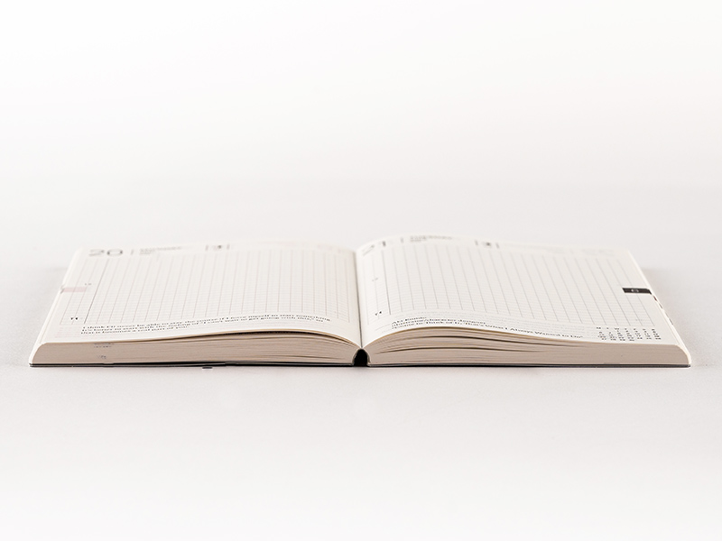 Special stitch-binding allows the planner to lay completely flat without having to hold it down.