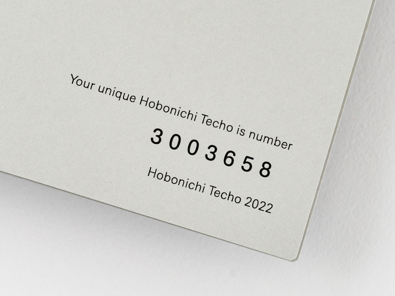 In addition to the Arts&Science logo, the Japanese characters for “techo” (which means “planner”) are stamped in gold on the chic, textured cover. The Hobonichi logo and the year appear on the spine for easy reference when storing the planner in a bookshelf.