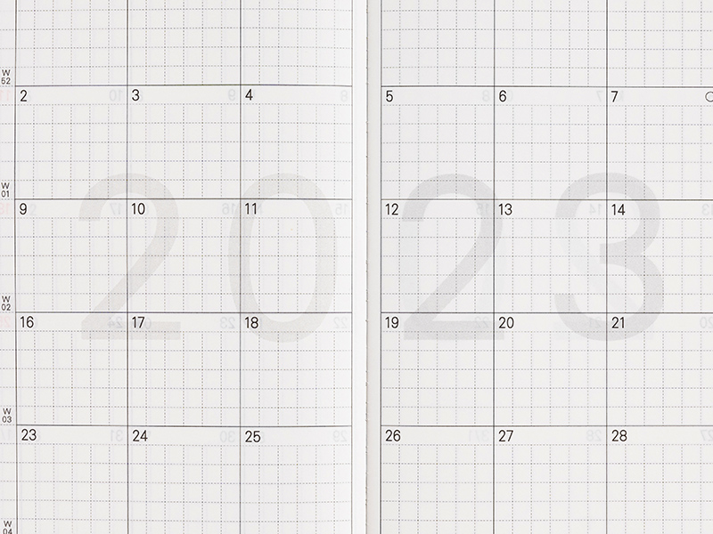 Each box is lightly printed with a graph design to make it easy to fill in a full day’s worth of plans. You can also take full advantage of the graph design by drawing out sections to allocate plans or entries visually.
