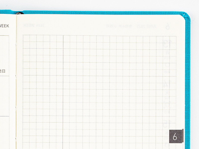 The right page on each weekly spread contains blank graph paper to give full reign to users when drawing out plans or writing out schedules. You can also draw lines across the page to correspond with each of the 7 days on the left to give yourself more writing room. At 3.55 mm, the graph paper’s grid is slightly smaller than that of the daily planners.