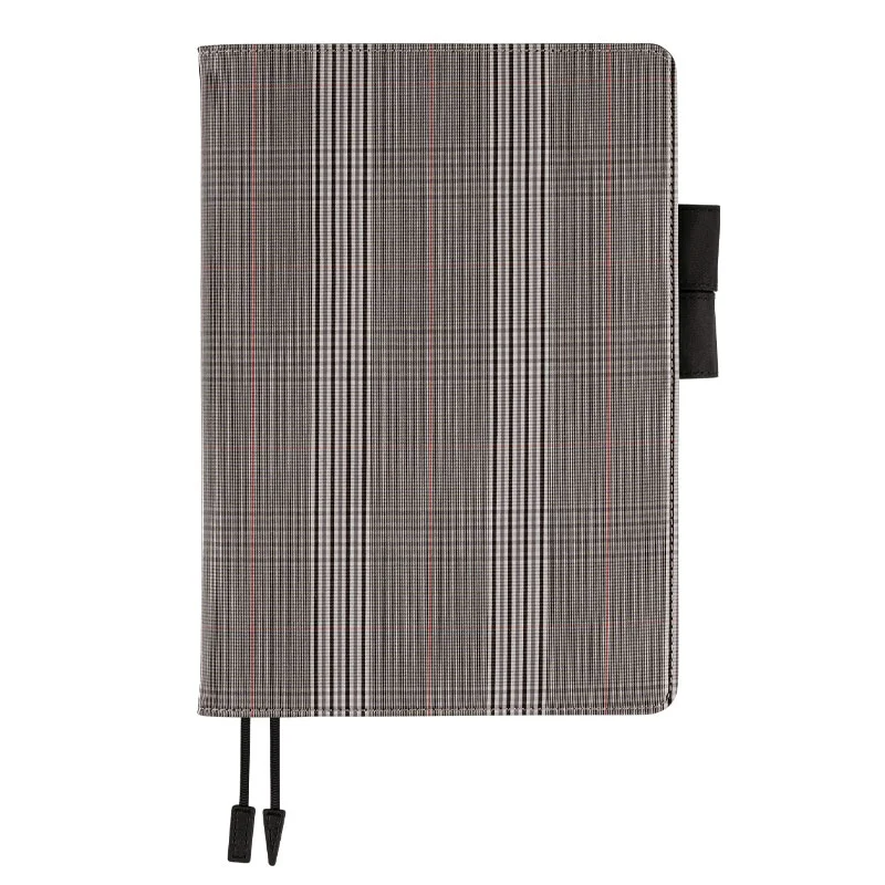 This cover uses a timeless, glen plaid pattern that has a classic and sophisticated feel. The black and white color combination is accented with the occasional thin, red line. It would blend in well on formal business occasions but would equally match the casual attire.