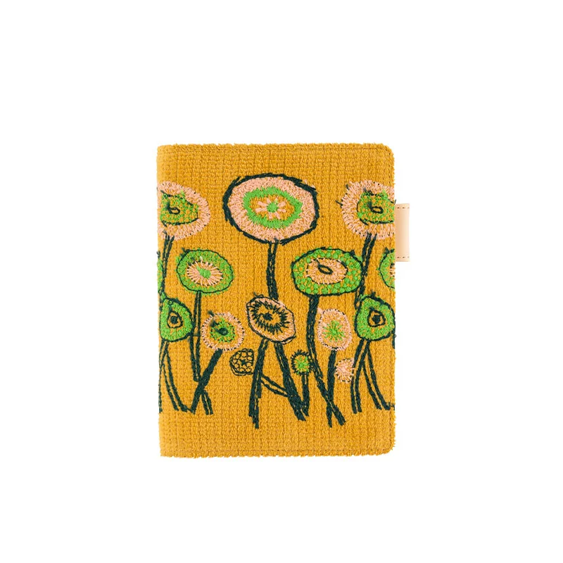 Although path is already a popular design, minä perhonen has created this new colorway especially for the Hobonichi Techo. This cover has a caramel-colored tint reminiscent of the sunlight bathing the path, and the embroidery is a refreshing green and gentle pink. The daring use of corduroy, with its extra-fine construction, gives this cover a wonderful feel in your hands.