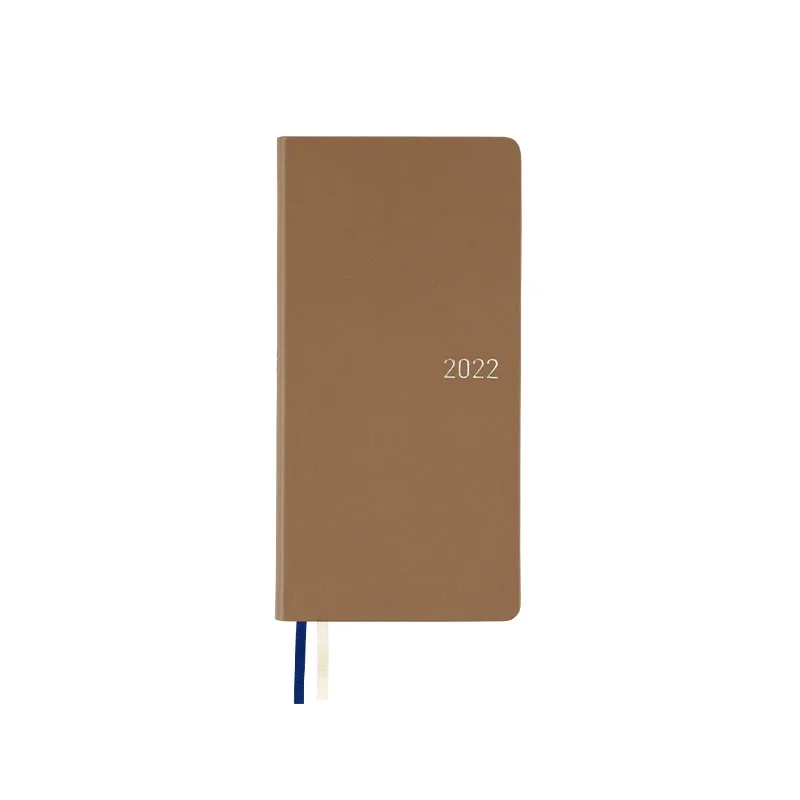 Cinnamon Beige has dyed beige leather with a hint of red for a deep-looking tone. The natural look makes it versatile and elegant. The year 2022 is foil-pressed in silver onto the cover to add a glint in the right light.