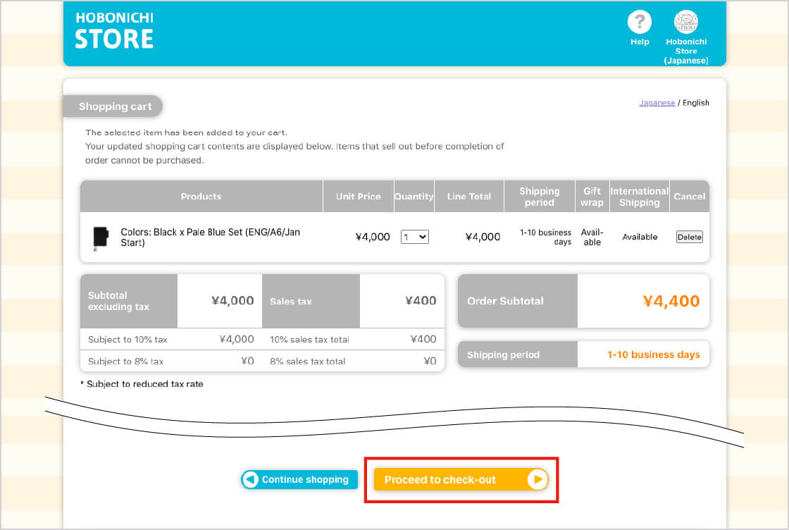 *All Hobonichi Store orders require an account to complete a purchase. New accounts can only be made at the time of a purchase.