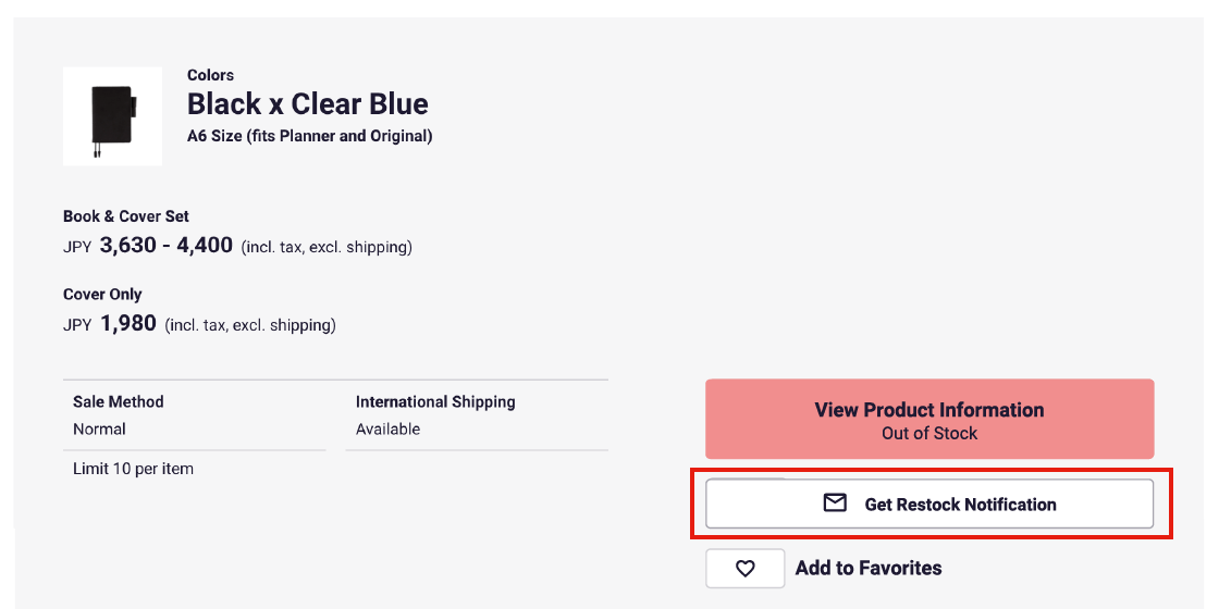 *This service is only available for the Hobonichi Techo. Restock notification emails are not available for accessories.