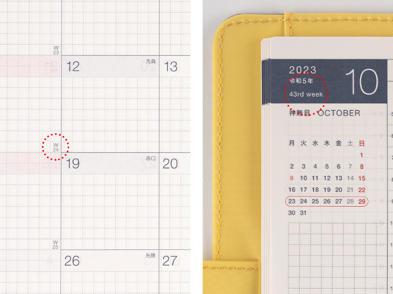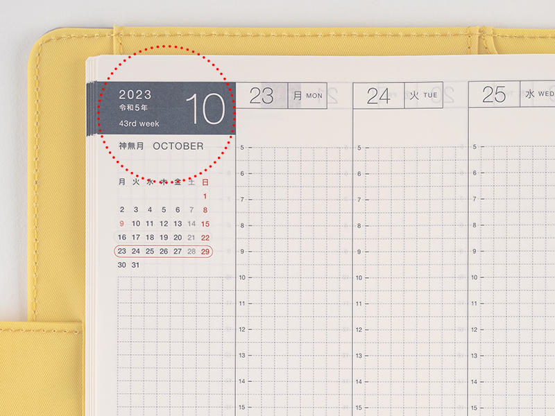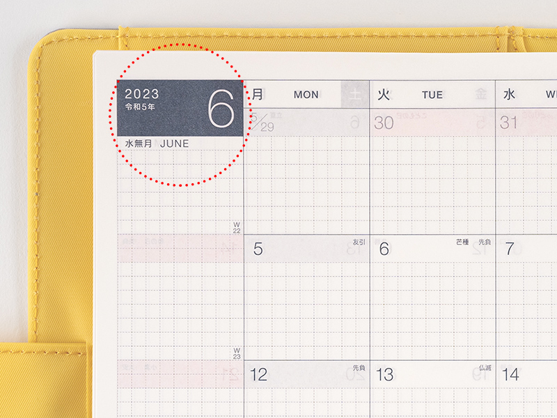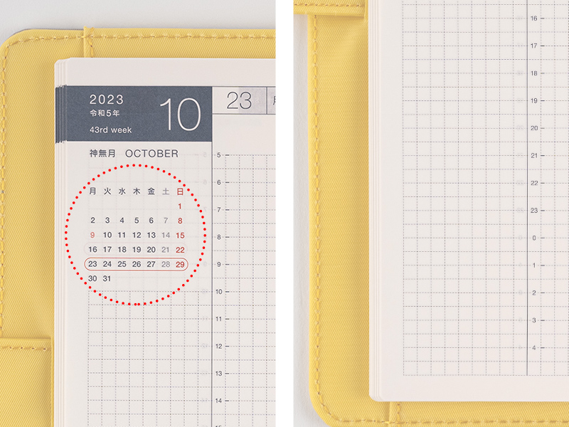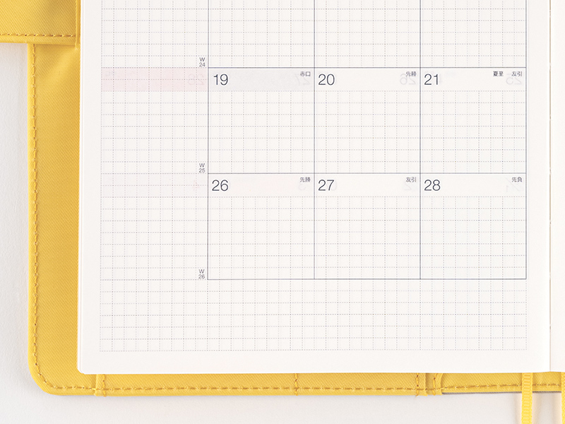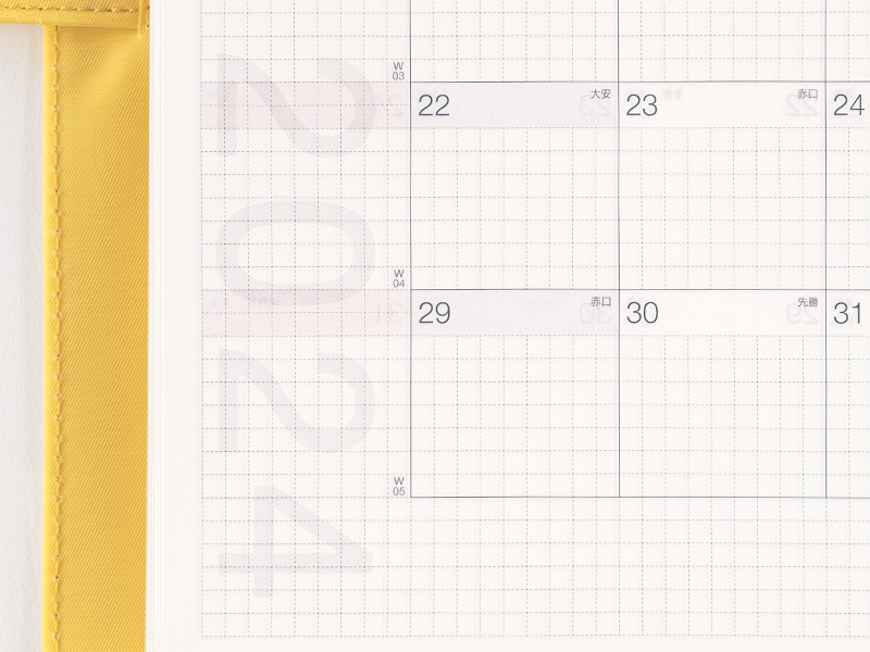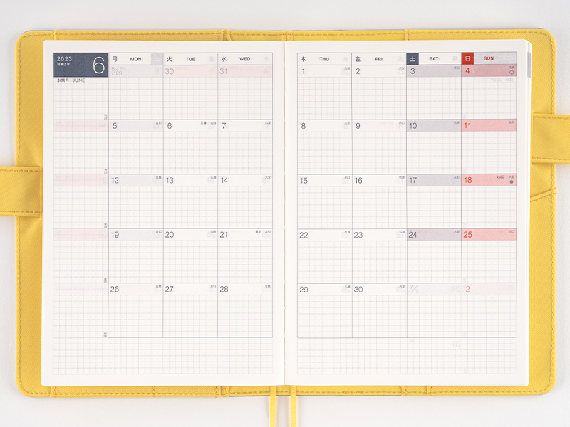 The monthly calendar is ideal for managing schedules. The graph paper design is lightly printed to make it easier to write in your plans and take notes in an even line. The blue gray and red print both allow for high visibility when writing in the calendar.