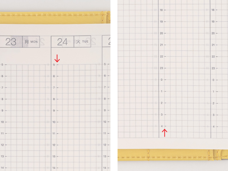 Each box is lightly printed with a graph design to make it easy to fill in a full day’s worth of plans. You can also take full advantage of the graph design by drawing out sections to allocate plans or entries visually.
