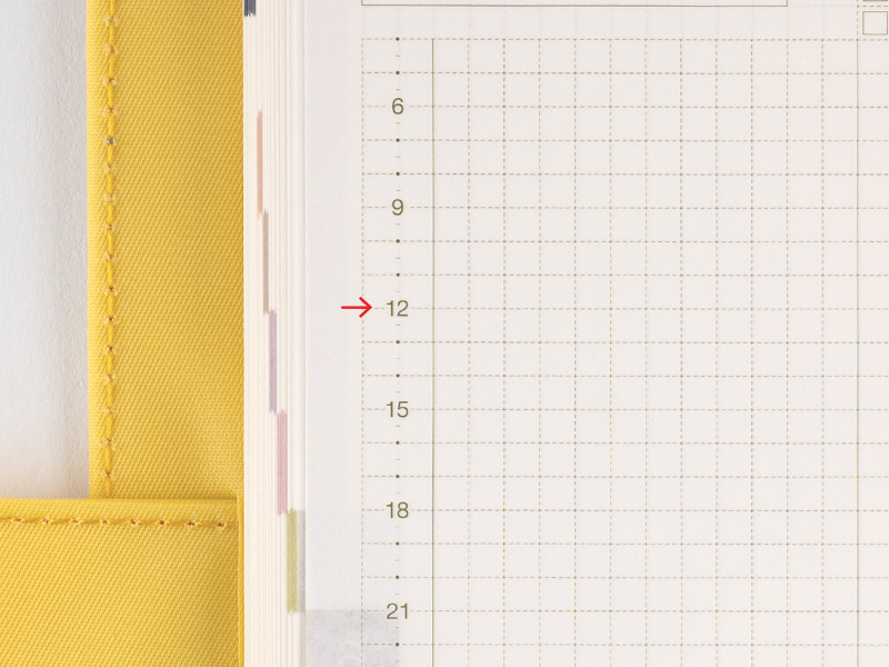 There’s also something we call the “Secret Line”: a vertical line that runs parallel along the right of the timetable. This separates the schedule on the left from the open memo pad on the right. We’ve printed it lightly enough that you can ignore it when using the page as a whole.
