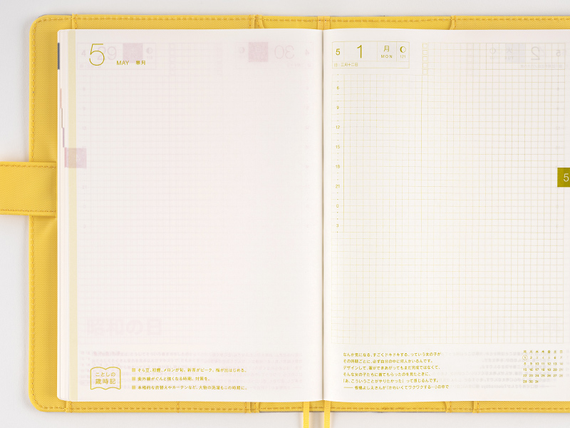 We’ve included a page at the beginning of each month for note-taking. The 2023 edition includes a seasonal compendium for everyday life with information such as foods that are in season and season-specific events for modern-day life.