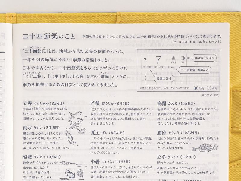 This section explains the names and origins of solar terms that make up the 24 points in traditional East Asian lunisolar calendars. These include well-known days such as the start of spring and the winter solstice.