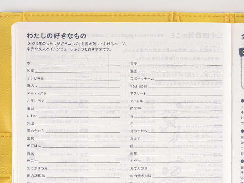 This page lets you write down your currently favorite things as of 2023. We also recommend using it as a template when asking friends and family about what they like.