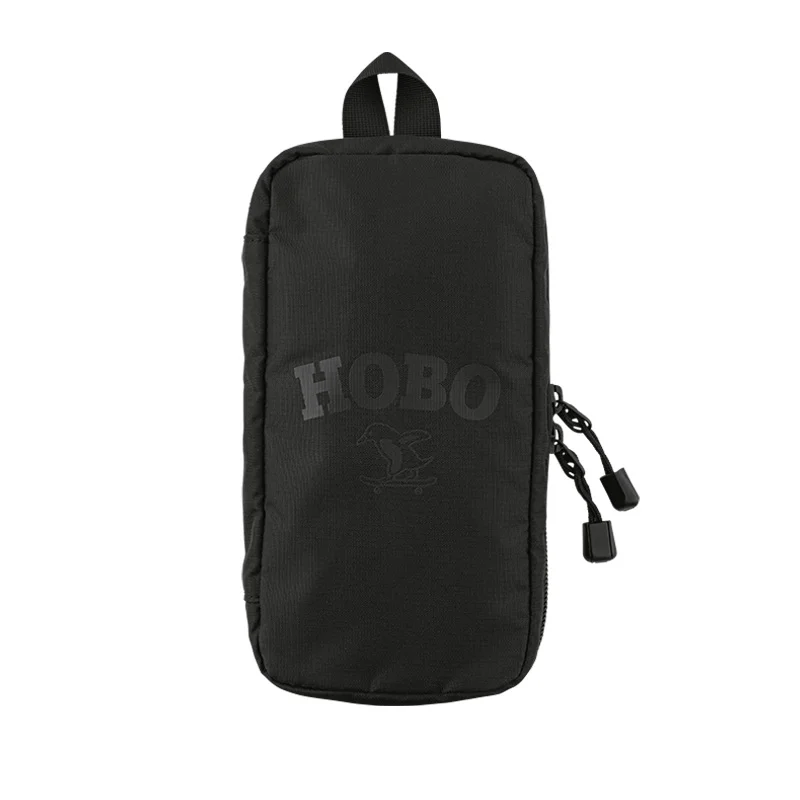 The top of this cover has a hook, alongside a large pocket on the back. The zipper pull is a drawcord, exemplary of an outdoor item.