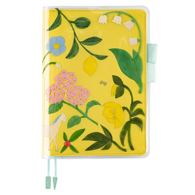 This is the decorated version of the Cover on Cover, an optional, extra covering that fits select Hobonichi Techo covers (for A5 size) to protect them from wear and tear while instantly giving solid-color covers a fresh new look. (Not for use directly on book.)