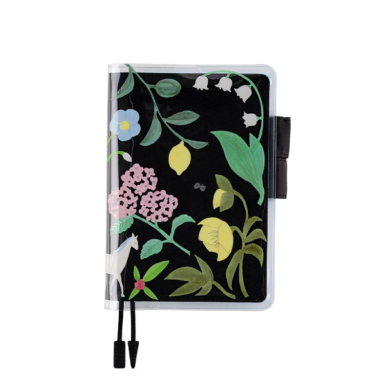 Cover on Cover is an optional, extra covering that fits select Hobonichi Techo covers to protect them from wear and tear. (Not for use directly on book.) It also provides a place to store postcards, pictures, and other decorations to spruce up the look of your cover. Feel free to fill it with family pictures, travel post cards, and other things that cheer you up!