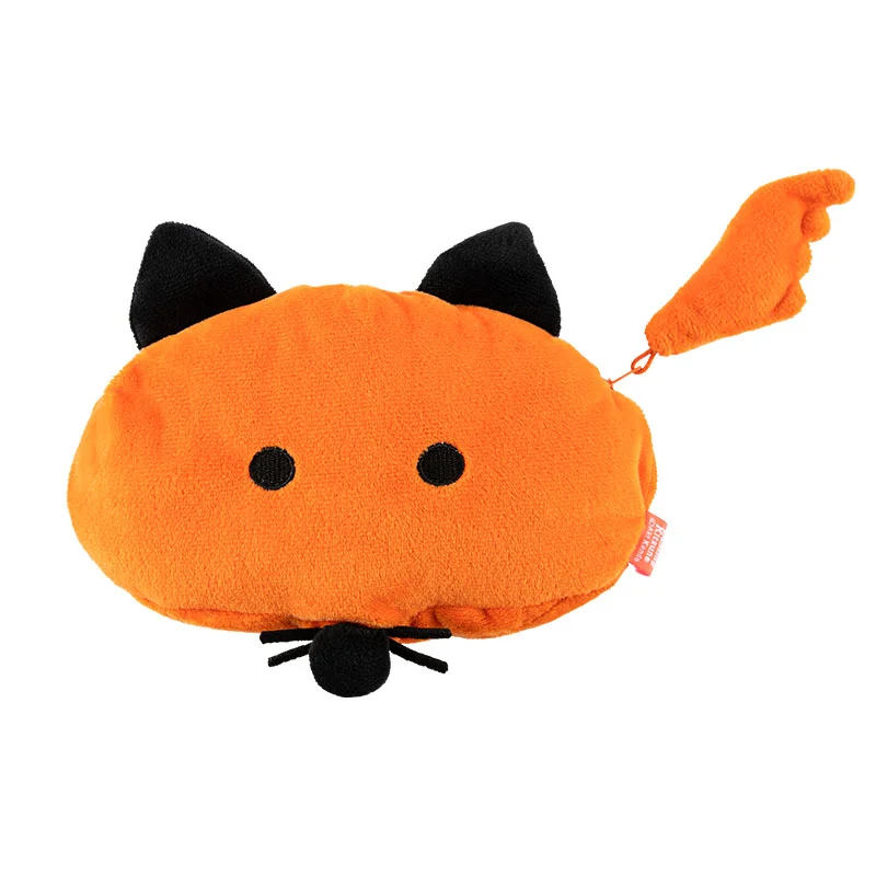 The round, plump pouch is squishy and soft to the touch. Open it behind its ears to accomodate small items such as pens, mints or lipstick. The zipper pull has a tail-shaped charm.