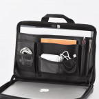 This PC case comes in two colors. The case is designed as a portable workspace, allowing you to stop by a cafe and open up the case to reveal everything you need. The case is large enough to comfortably hold an 11" laptop, or squeeze in a 13" laptop for a perfect fit. The inside of the case includes bands on either side so your case stays attached to your laptop when you open it up. The cushioned material of the case absorbs external shocks and protects everything inside.