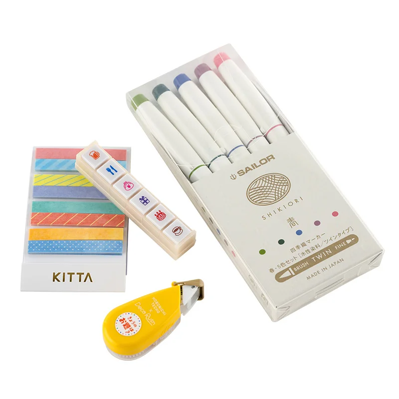 This set is recommended for anyone who wants to decorate their techo spread cutely, or are planning to use the Hobonichi Techo for the very first time. It contains a selection of four stationery items that will easily make your techo fun and lively.