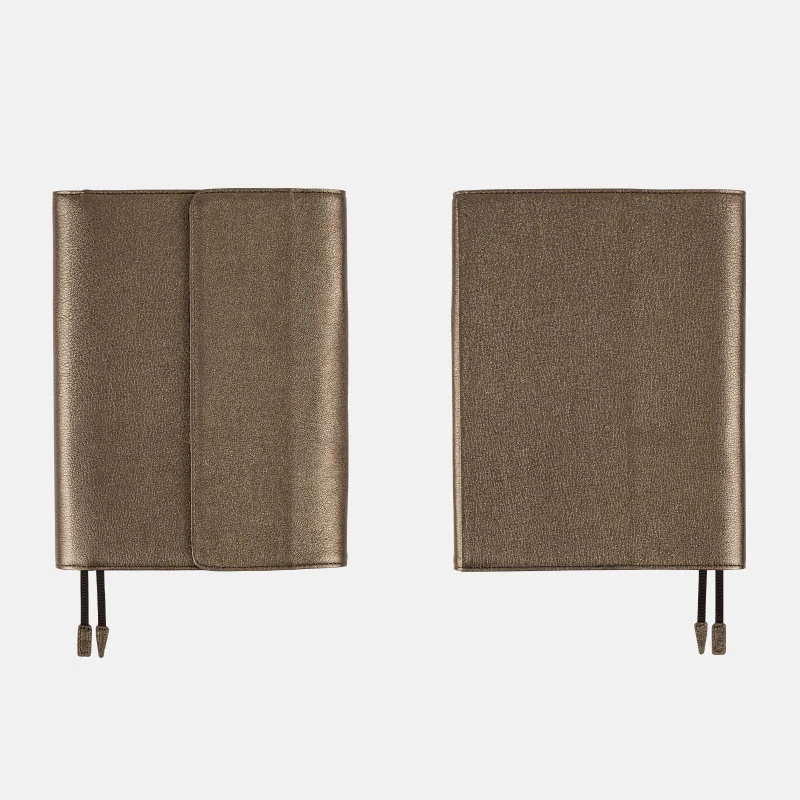 The Hobonichi logo is foil-pressed in gold on the right-hand pocket.