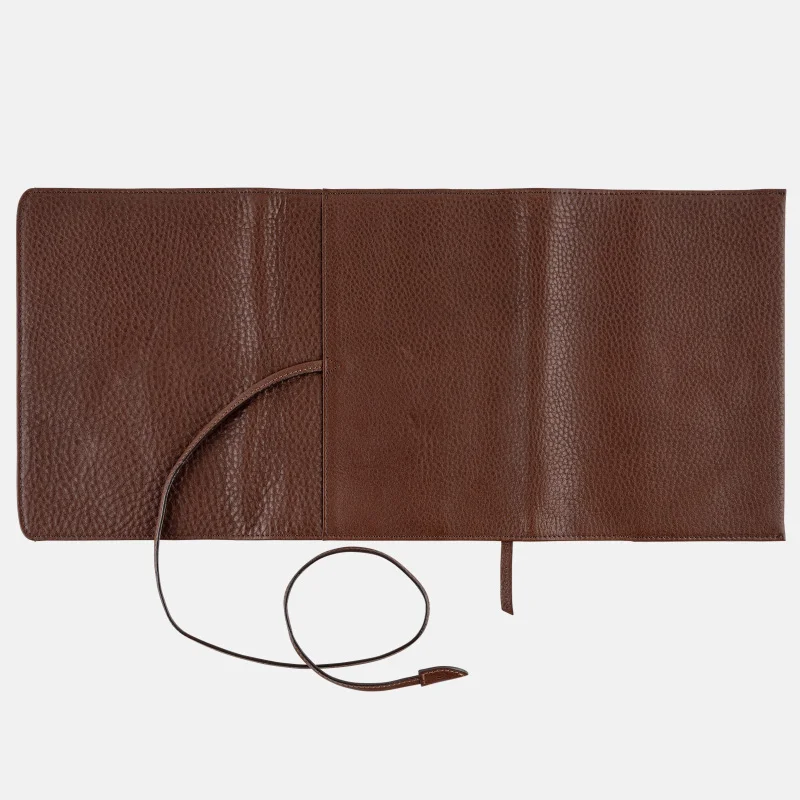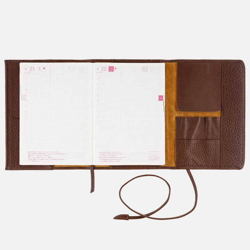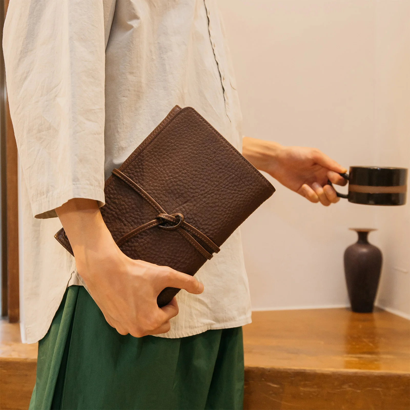 The leather is an oil natural leather from Tsuchiya Bag Factory’s "tone oil nume" series that has been enjoyed for a long time. The moist, soft leather will fit well into your hands and will mature as you use it to become even softer with an added sheen. You will be able to enjoy the charms of a leather cover to its fullest, especially because it's in a wide A5 size, making this cover the perfect choice for anyone purchasing a leather product for the first time. The cover color is a calm dark brown. The chic and deep hue of brown will fill you with peace just by looking at it.