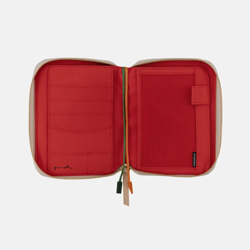 The cover interior is an energizing solid red. The bottom left pocket includes Yunoki’s signature.
