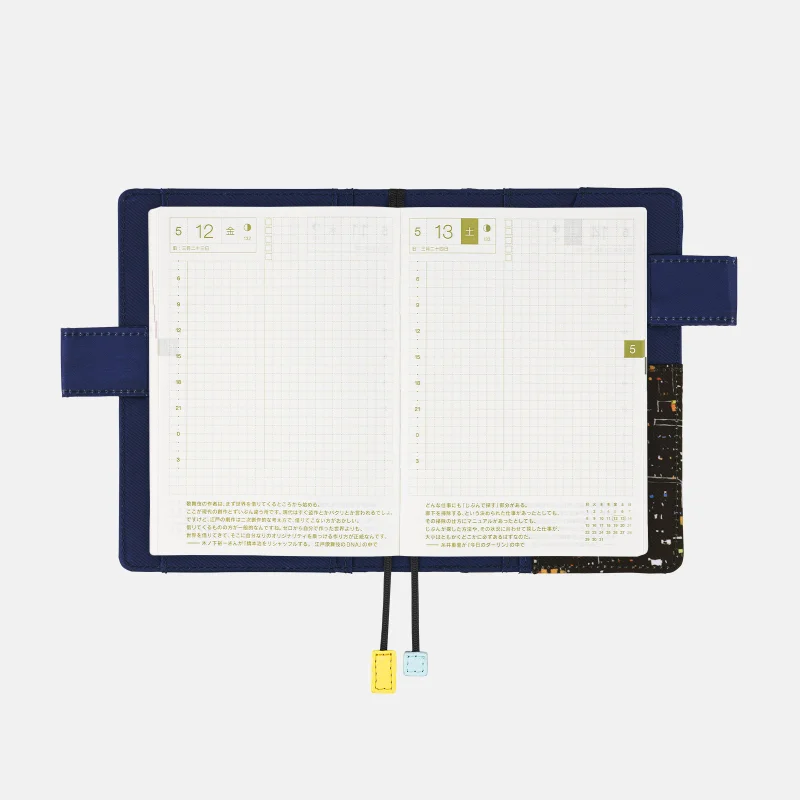 | Bonus Pages | Time Table / Graph Paper / Favorites / My 100 / Solar Terms / My Favorite Things / How to Better Enjoy Conversation / Enjoy Learning at the Hobonichi School / Emergency Preparedness / Conversion Chart / Getting the most of Hobonichi / Gifts / Age Table / Addresses (for 6 people) / Personal Notes |