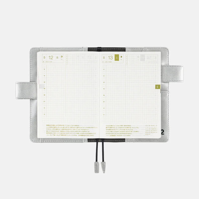 | Bonus Pages | Time Table / Graph Paper / Favorites / My 100 / Solar Terms / My Favorite Things / How to Better Enjoy Conversation / Enjoy Learning at the Hobonichi School / Emergency Preparedness / Conversion Chart / Getting the most of Hobonichi / Gifts / Age Table / Addresses (for 6 people) / Personal Notes |